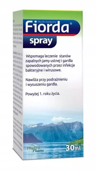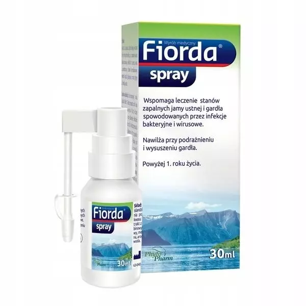 Preparat Fiorda przeznaczony do leczenia stanów zapalnych jamy ustnej i gardła u dorosłych i dzieci powyżej 1. roku życia. Nawilża podrażnione gardło i pokrywa je warstwą ochronną, która zapobiega ponownemu zakażeniu lub przesuszeniu błony śluzowej. Spray polecany także do łagodzenia bólu w trakcie przełykania, drapania w gardle i pieczenia.