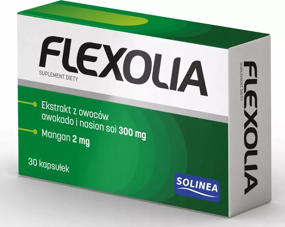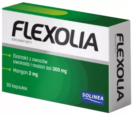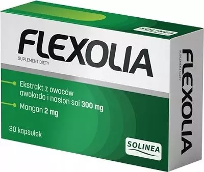 Flexolia to preparat, którego głównymi składnikami są ekstrakt z owoców awokado i nasion soi oraz mangan.