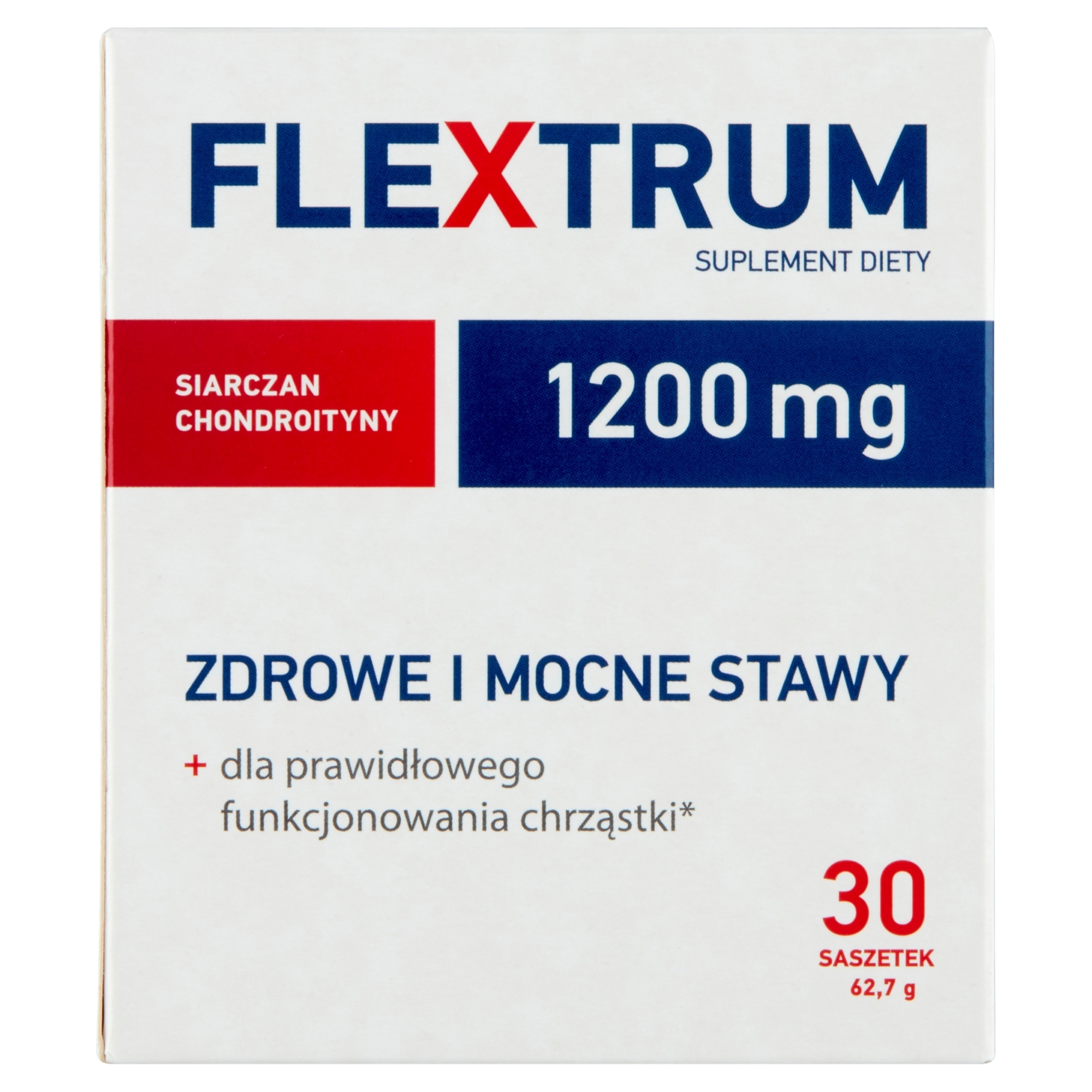 Flextrum 1200 to suplement diety przeznaczony do uzupełnienia codziennej diety osób dorosłych w chondroitynę i witaminę C – składniki wspierające prawidłowe funkcjonowanie chrząstki.