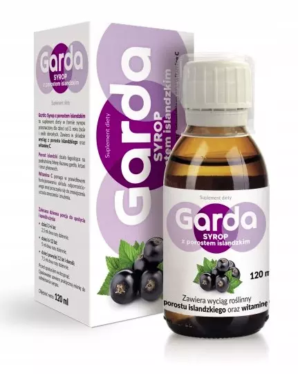 Garda Syrop z porostem islandzkim to suplement diety w formie syropu przeznaczony dla dzieci od 3 roku życia i osób dorosłych. Zawiera w składzie wyciąg z porostu islandzkiego oraz witamina C.