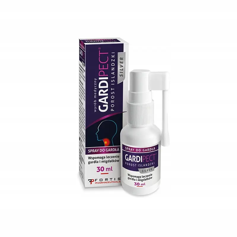 Wyrób medyczny Gardipect porost islandzki SILVER może być stosowany wspomagająco podczas:zapalenia błony śluzowej gardła, zapalenia błony śluzowej jamy ustnej, zapalenia migdałków podniebiennych oraz po usunięciu migdałków podniebiennych. Spray do gardła Gardipect porost islandzki SILVER to preparat, który nie zawiera wyciągów alkoholowych, dlatego nie podrażnia wrażliwej śluzówki gardła i jamy ustnej. Produkt jest przeznaczony dla dorosłych i dzieci powyżej 6 roku życia.