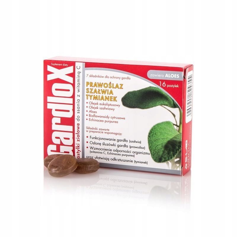 Gardlox – Ziołowe pastylki do ssania z witaminą C i aloesem - składniki zawarte w preparacie wzmacniają odporność organizmu oraz wspomagają funkcjonowanie gardła.