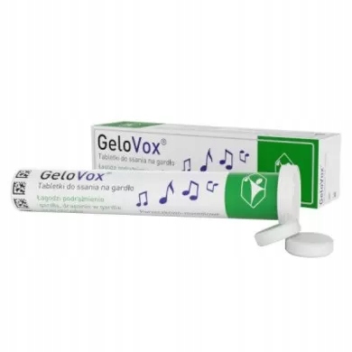 GeloVox tabletki do ssania na gardło zapewniają ochronę błony śluzowej jamy ustnej i gardła. Stosuje się je w celu łagodzenia dolegliwości gardła takich jak: chrypka, podrażnienie gardła, drapanie w gardle oraz suchość błon śluzowych prowadząca do bólu gardła lub suchego nieproduktywnego kaszlu.