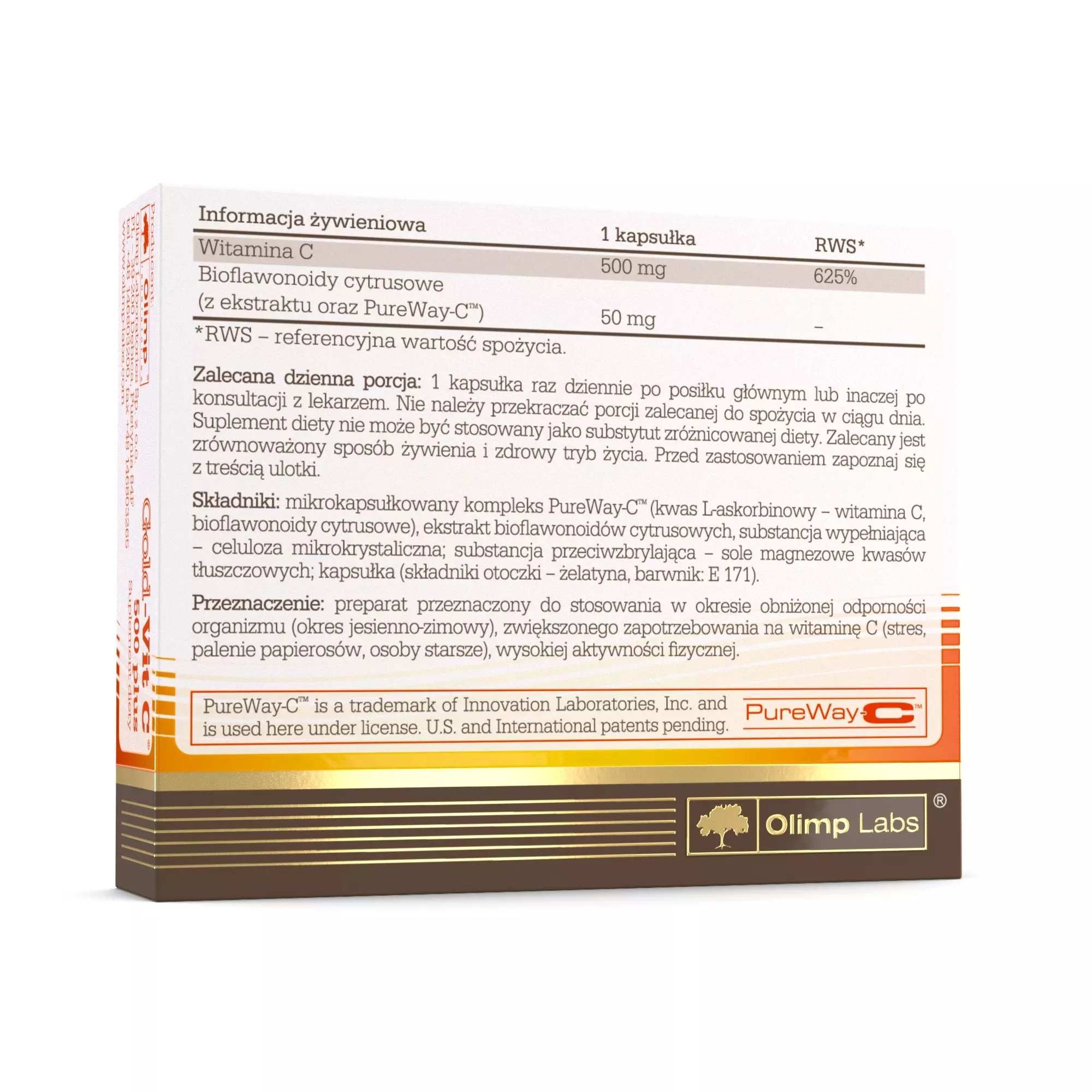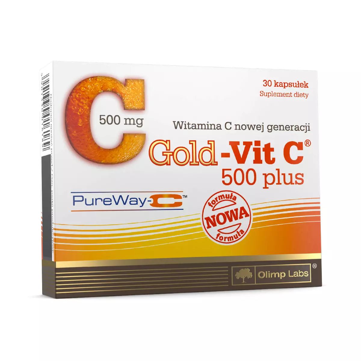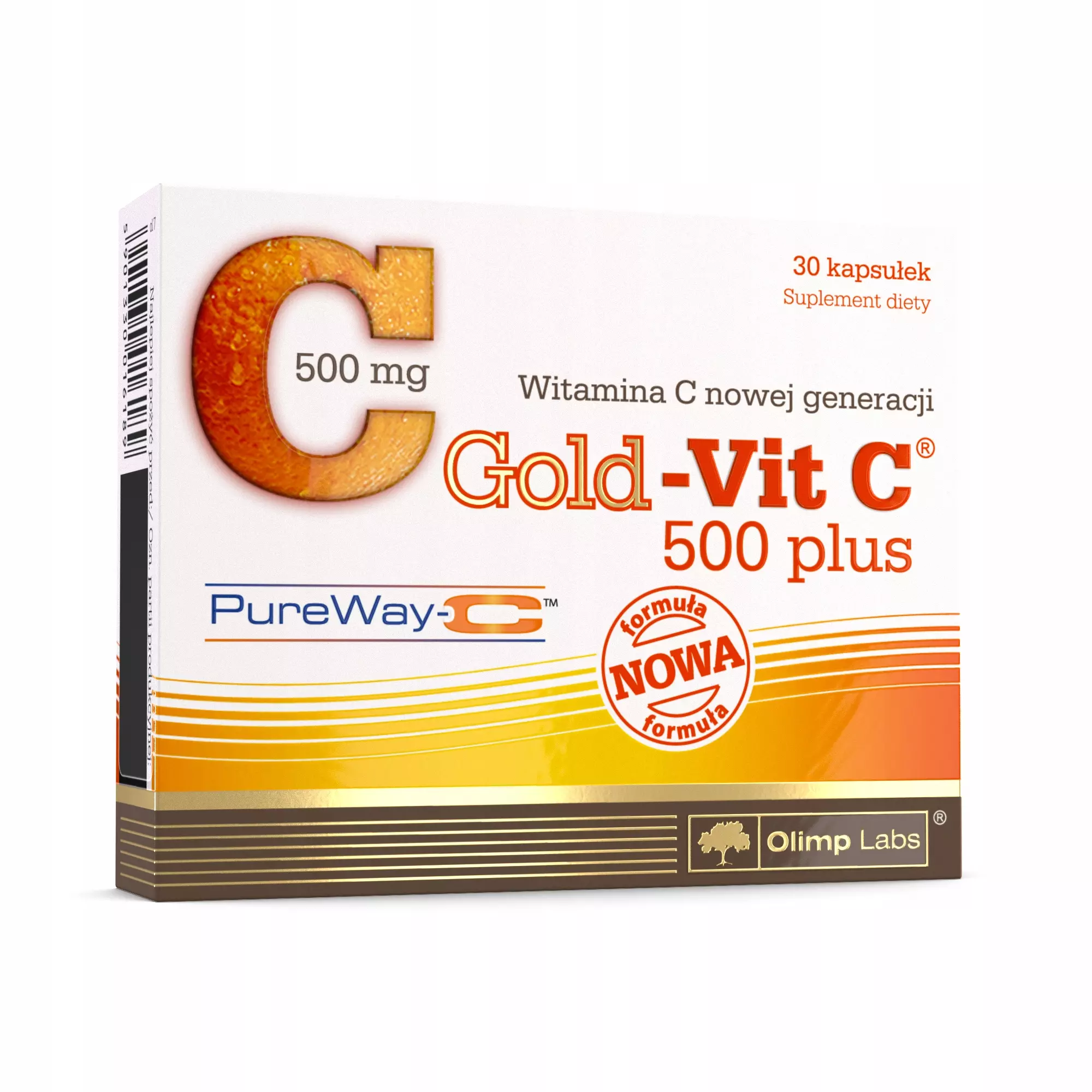 Gold-Vit C 500 mg Plus to suplement diety w kapsułkach zawierający PureWay-C - opatentowaną witaminę C nowej generacji - mikrokapsułkowany kompleks kwasu L-askorbinowego i naturalnych wosków roślinnych - przyjazną dla żołądka, wspomagającą układ odpornościowy, wzbogacona bioflawonoidami cytrusowymi.
