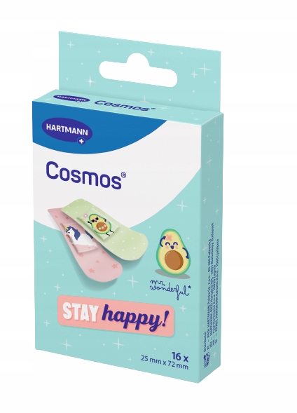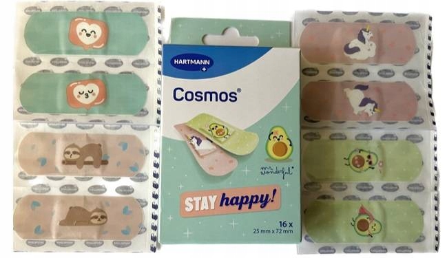 Hartmann Cosmos STAY HAPPY to plastry dziecięce Kolorowe do zaopatrywania drobnych ran i skaleczeń, idealny do opatrywania płytkich zranień u dzieci.