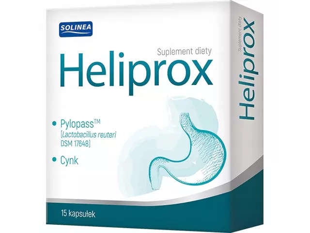 Heliprox to suplement diety stanowiący unikalne połączenie inaktywowanych bakterii kwasu mlekowego (Lactobacillus reuteri DSM 17648) z cynkiem.