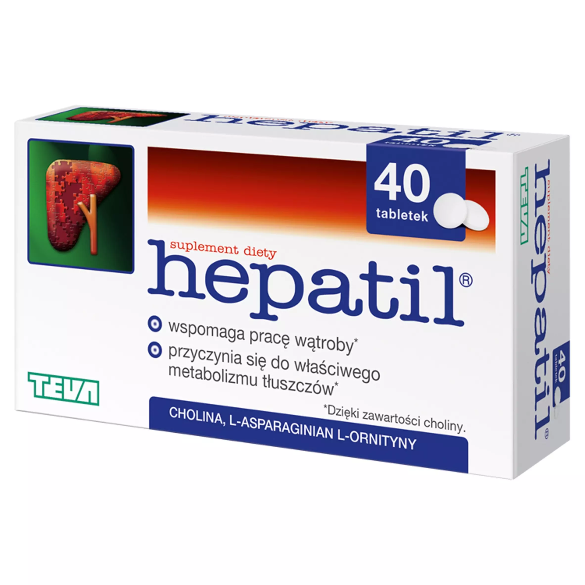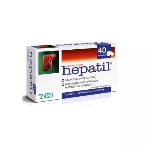 Hepatil zawiera L-asparaginian L-ornityny (100 mg) oraz cholinę (35 mg).