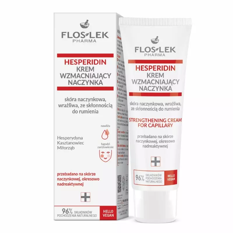Krem z hesperydyną, kasztanowcem i miłorzębem do codziennej, dzienno-nocnej pielęgnacji cery z rozszerzonymi i pękającymi naczynkami, napadowym rumieniem. Dobrze tolerowany przez cerę wrażliwą.