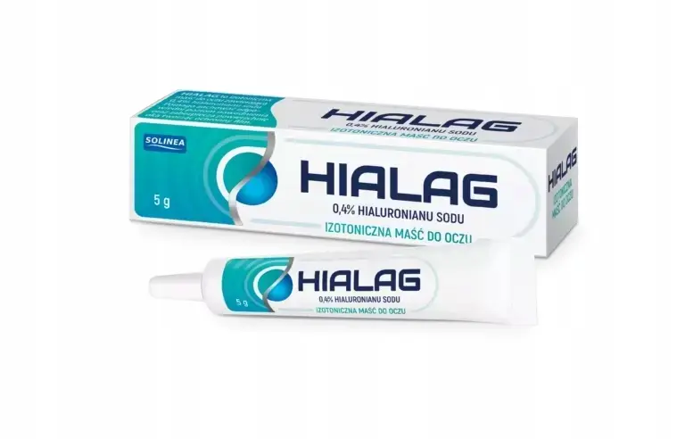 HIALAG to sterylna, izotoniczna maść do oczu przeznaczona do łagodzenia objawów suchego oka oraz niedomykalności powiek. Formulacja maści sprzyja utrzymywaniu się na powierzchni oka, a hialuronian sodu tworząc barierę na powierzchni rogówki zapewnia ochronę i nawodnienie. Hialuronian sodu składający się z łańcuchów cukrowych, rozprowadzany jest po powierzchni rogówki tworząc strukturę zdolną do wiązania cząsteczek wody. Dzięki tym właściwościom nawilża i chroni powierzchnię oka. HIALAG zwiększa poziom nawodnienia i nawilżenia powierzchni oka w przypadku suchości, pieczenia czy zmęczenia oczu, spowodowanych np. HIALAG chroni powierzchnię rogówki i spowalnia parowanie filmu łzowego u pacjentów cierpiących z powodu nocnej niedomykalności powiek, przynosząc ulgę w typowych objawach takich jak suchość, pieczenie czy uczucie ciała obcego w oku.