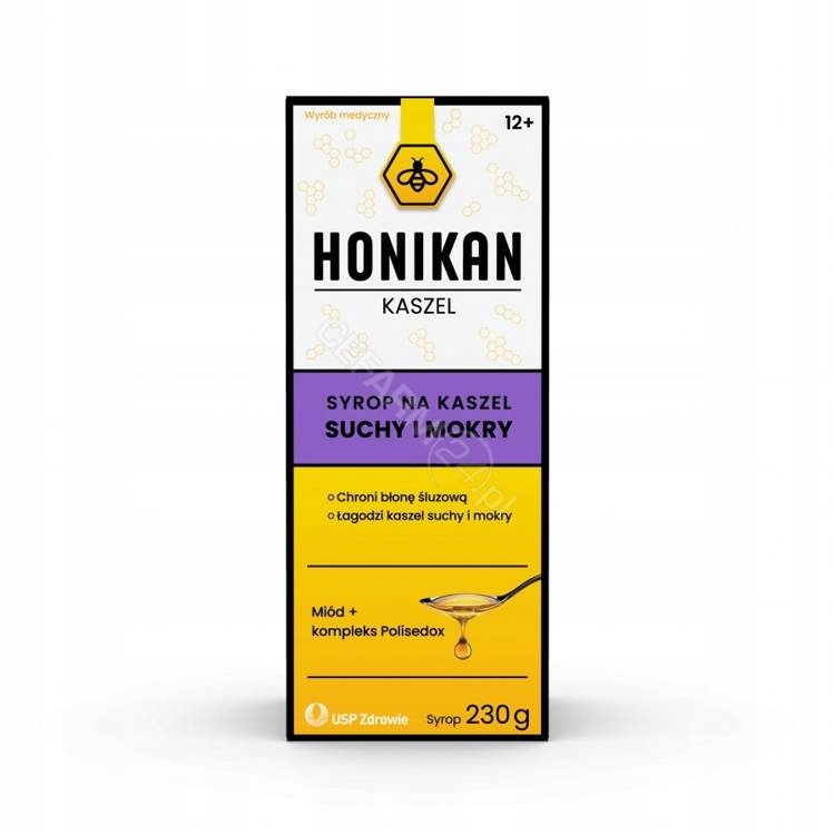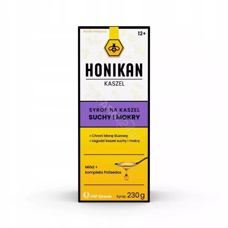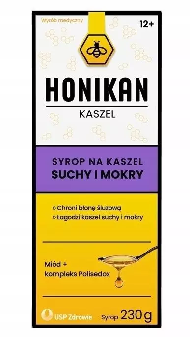 - HONIKAN KASZEL to wyrób medyczny na bazie miodu i innowacyjnego naturalnego kompleksu Polisedox z babki lancetowatej, prawoślazu i malwy, bogatego w polisacharydy, o działaniu powlekającym i łagodzącym na górne drogi oddechowe.