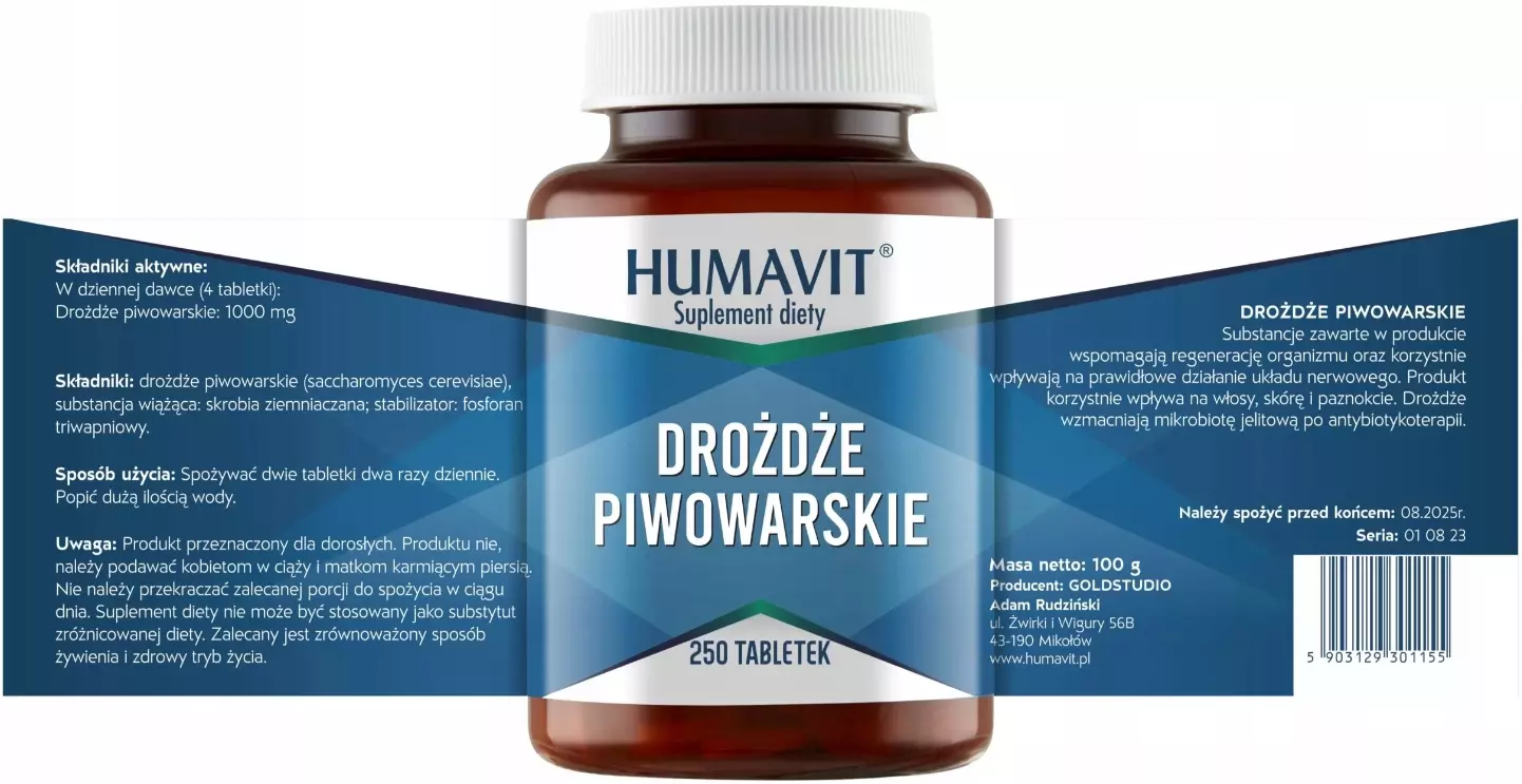 Humavit Drożdże Piwowarskie Wzmacniają Mikroflorę Jelitową 250 Tabletek