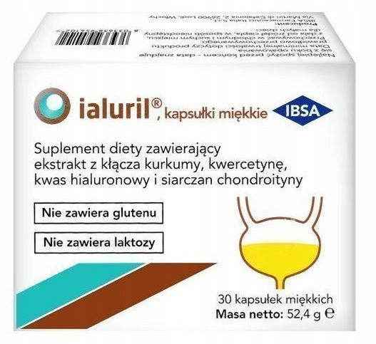 Kapsułki Ialuril®SoftGels to suplement diety zawierający ekstrakt z kłącza kurkumy, kwercetynę, kwas hialuronowy i siarczan chondroityny.