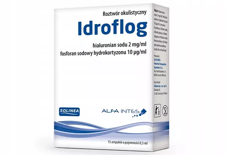 Idroflog to roztwór okulistyczny zawierający hialuronian sodu oraz fosforan sodowy hydrokortyzonu.