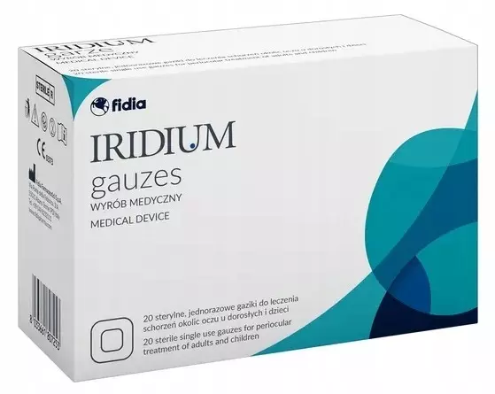 Gaziki bawełniane Iridium Gauzes, nasączone naturalnymi składnikami pomagają usunąć wydzieliny, zanieczyszczenia i ciała obce. Ich formuła jest zgodna pod względem fizyko-chemicznym z filmem łzowym i posiada zrównoważone pH.