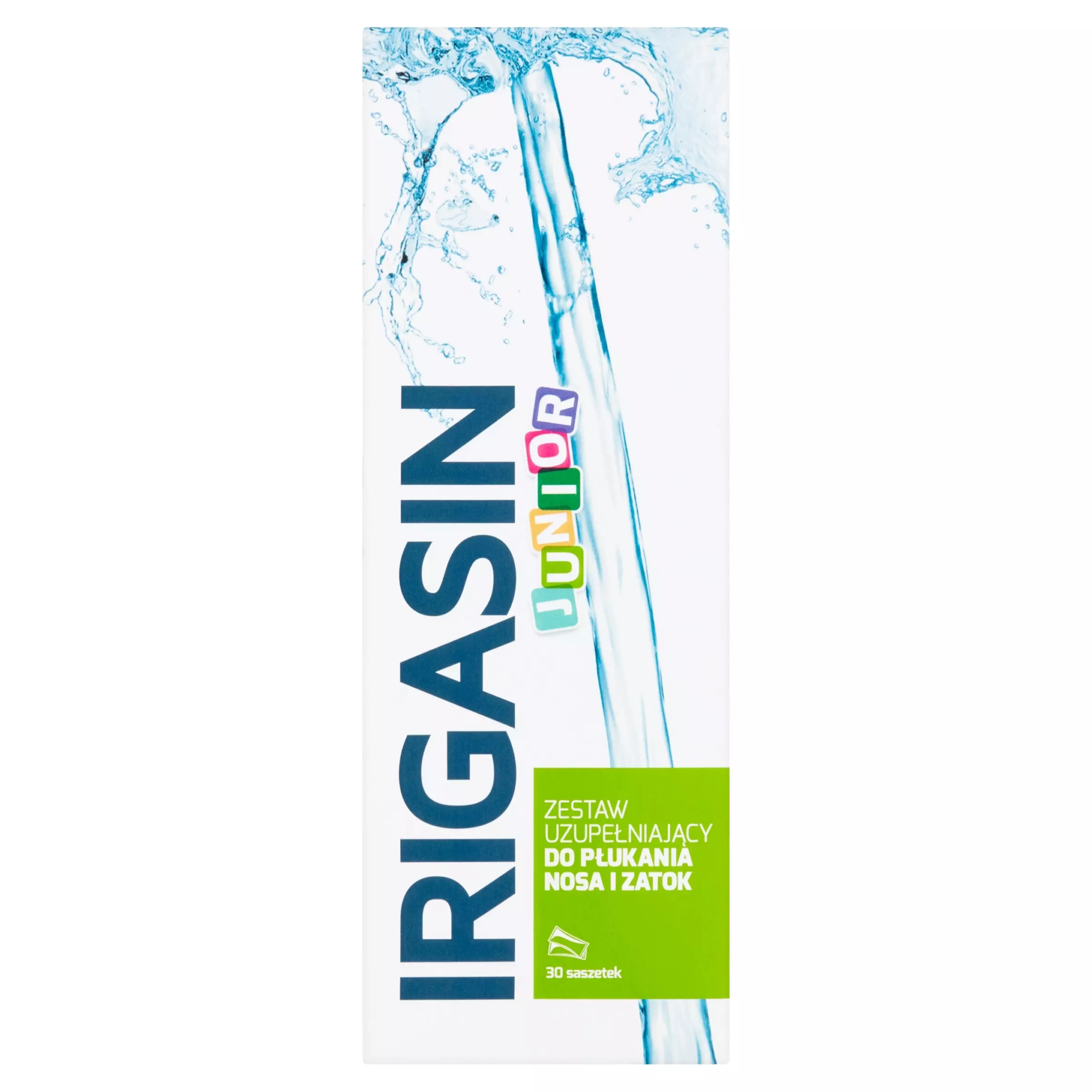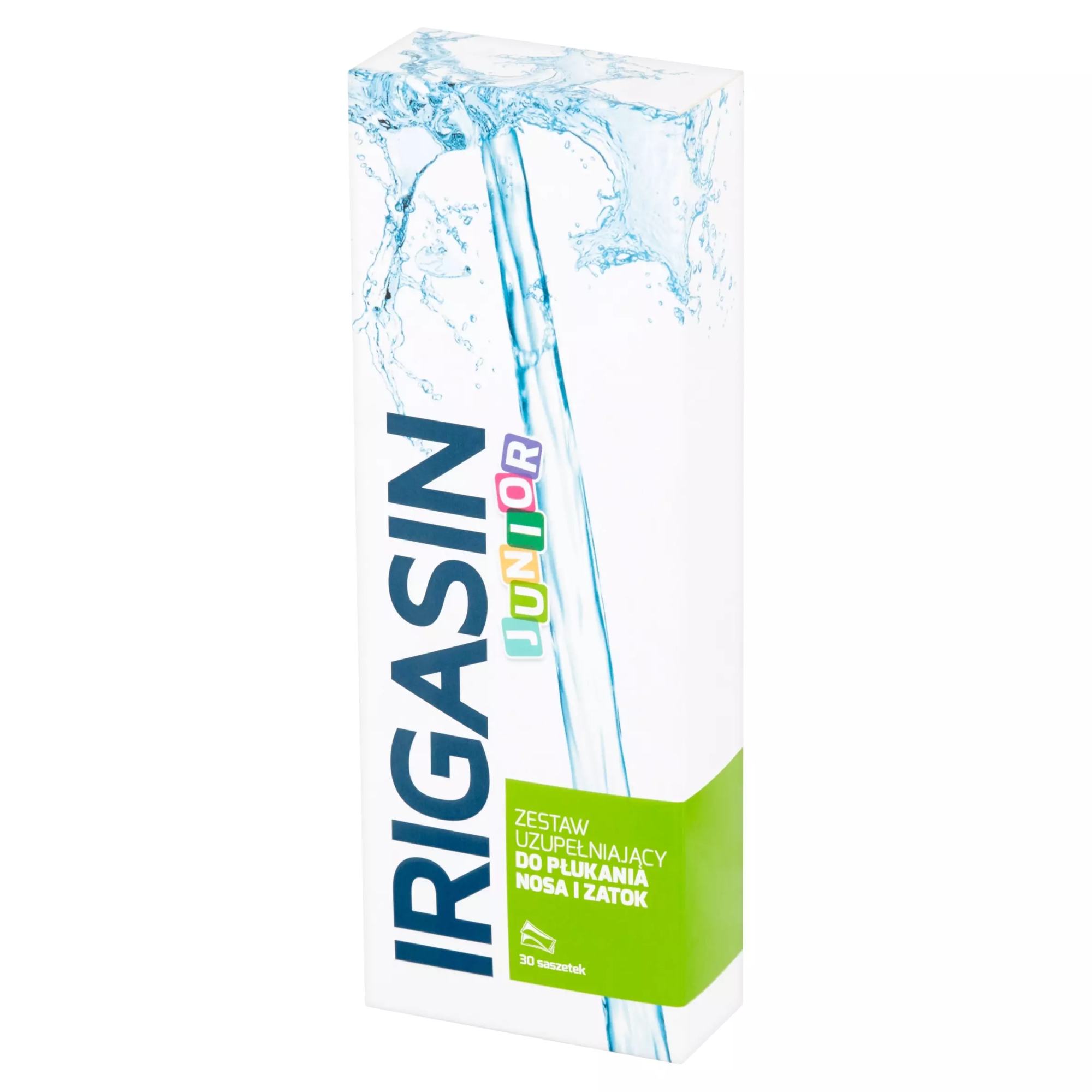 IRIGASIN JUNIOR to wyrób medyczny przeznaczony do przygotowania roztworu do płukania nosa i zatok u dzieci. Zestaw składa się z dostosowanego do dzieci irygatora oraz 12 saszetek. Butelka jest zakończona ergonomicznym aplikatorem, zapewniającym bezpieczne użycie. Przeznaczony dla dzieci od 4. roku życia.