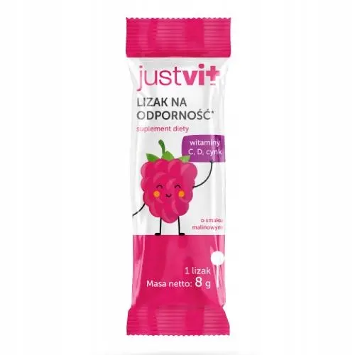 Suplement diety w postaci lizaka o smaku malinowym. Jego składniki, witamina C, D i cynk pomagają w prawidłowym funkcjonowaniu układu odpornościowego. Produkt polecany jest do stosowania w okresie jesienno-zimowym, wymagającym prawidłowej pracy układu immunologicznego. Suplement diety przeznaczony dla dzieci powyżej 3. roku życia i dorosłych.