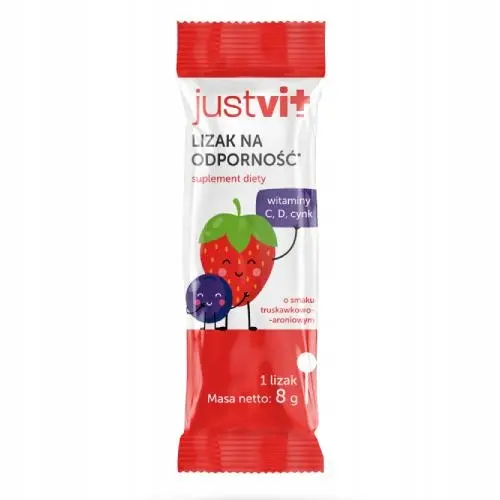 Suplement diety w postaci lizaka o smaku truskawkowo-aroniowym. Jego składniki, witamina C, D i cynk pomagają w prawidłowym funkcjonowaniu układu odpornościowego. Produkt polecany jest do stosowania w okresie jesienno-zimowym, wymagającym prawidłowej pracy układu immunologicznego. Suplement diety przeznaczony dla dzieci powyżej 3. roku życia i dorosłych.