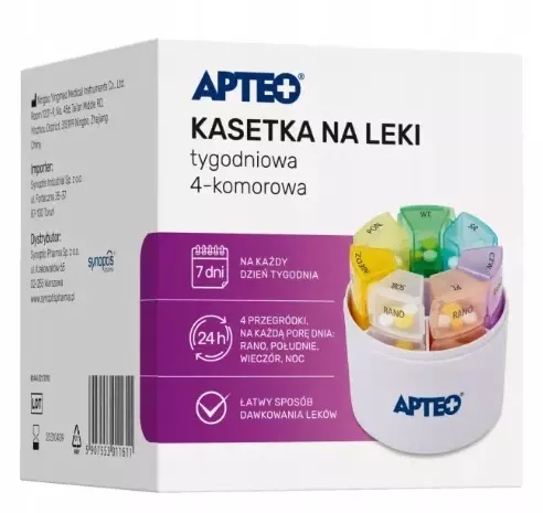 Apteo Kasetka na leki tygodniowa 4-komorowa - 1 sztuka