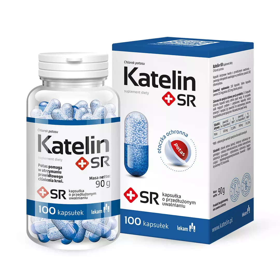 Potas zawarty w suplemencie diety Katelin + SR pomaga w utrzymaniu prawidłowego ciśnienia krwi, w prawidłowym funkcjonowaniu mięśni i układu nerwowego oraz w prawidłowym funkcjonowaniu układu mięśniowego.