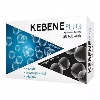 Kebene Plus w formie tabletek jest to wyrób medyczny przeznaczony do leczenia objawów wzdęć żołądka i jelit. Produkt przeznaczony jest dla osób dorosłych, oraz młodzieży powyżej 14 roku życia.
