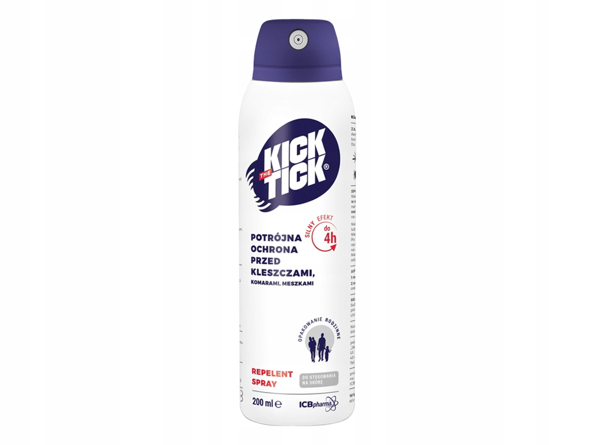 KICK THE TICK® Max Repelent Plus to spray w ekonomicznym opakowaniu, który skutecznie chroni przed kleszczami, komarami i meszkami.
