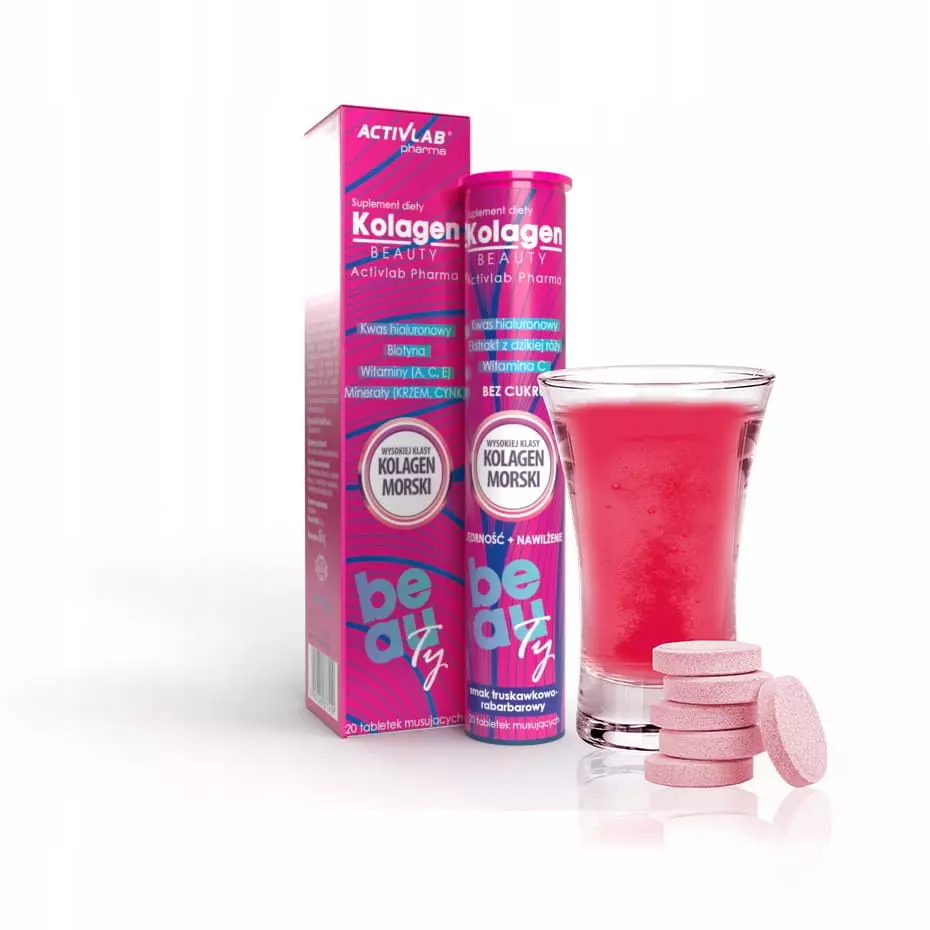 Kolagen Beauty truskawka-rabarbar 20 tabl musujących