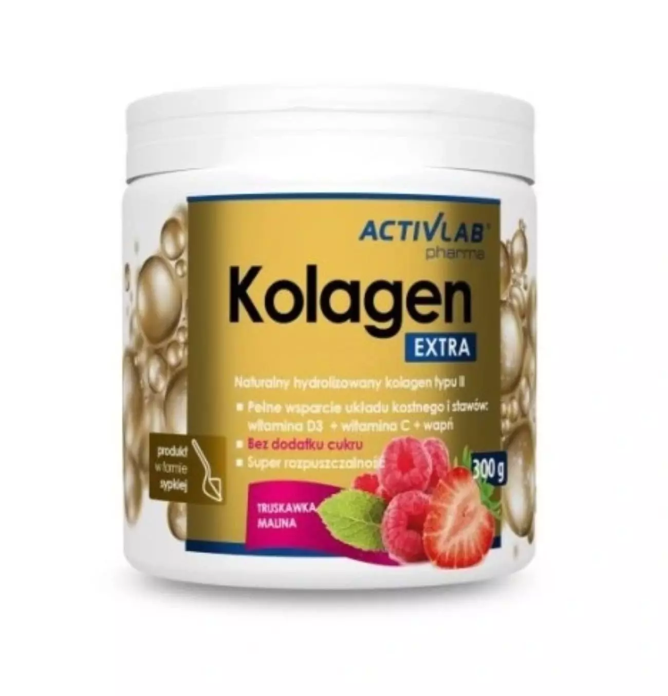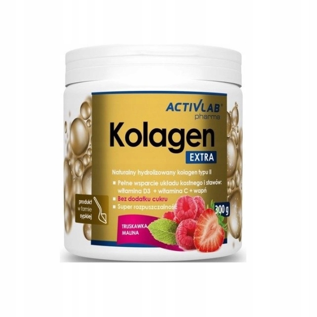 Activlab Kolagen EXTRA - Czysty nieprzetworzony surowiec - hydrolizowany kolagen typu II - 300 g Truskawka-Malina