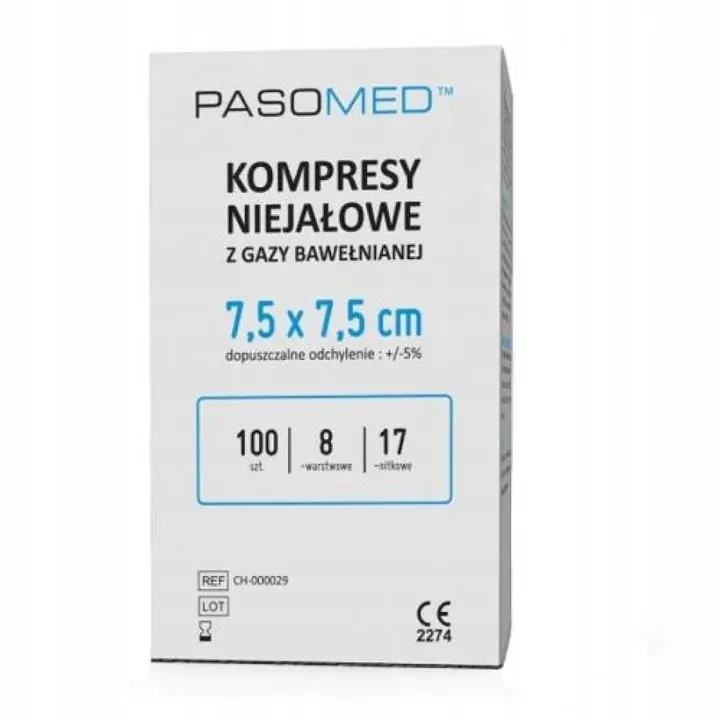 Kompres Niejałowy 17N 8W 7,5 cm x7,5 cm 100 szt Pasomed