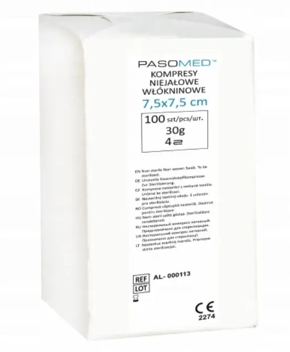Kompres Włókninowy Niejałowy 30G 4W 7,5 cm x 7,5 cm 100 szt Pasomed