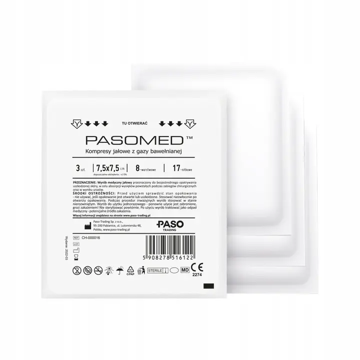 Kompresy Jałowe 3 Sztuki 7,5 x 7,5 cm Pasomed
