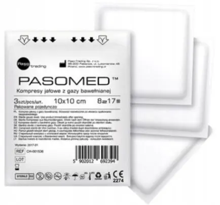 Kompresy Jałowe Z Gazy Bawełnianej 10 x 10 cm 3 szt Pasomed