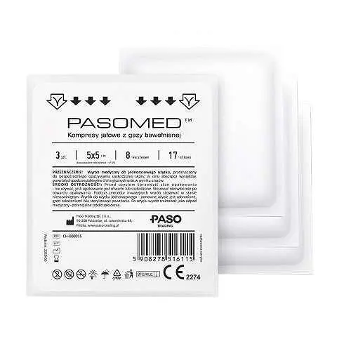 Kompresy Jałowe Z Gazy Bawełnianej 5 x 5 cm 3 szt Pasomed