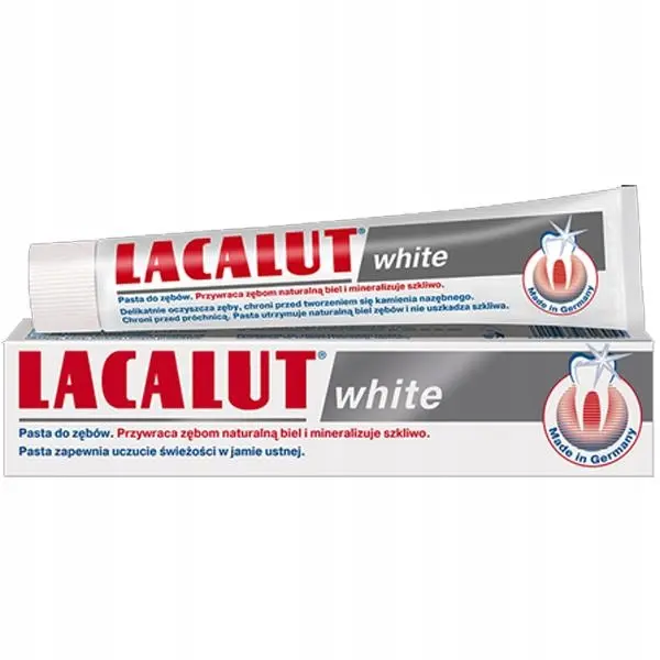 Zawiera fluorek sodu, który przeciwdziała próchnicy, wzmacnia powierzchnię zębów, sprzyja remineralizacji. LACALUT WHITE przeznaczona jest do codziennej pielęgnacji zębów.