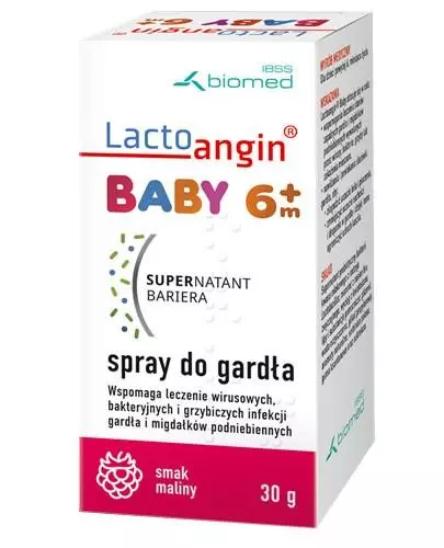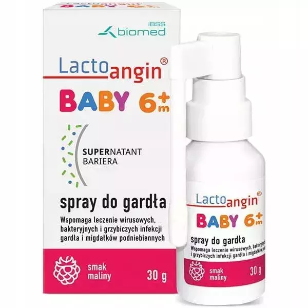 Lactoangin Baby spray do gardła to wyrób medyczny przeznaczony do wspomagania leczenia wirusowych, bakteryjnych oraz grzybiczych infekcji gardła i migdałków podniebiennych. Może być stosowany u dzieci po ukończeniu 6 miesiąca życia. Spray zawiera 100% naturalnych składników aktywnych. Do najważniejszych z nich należą: