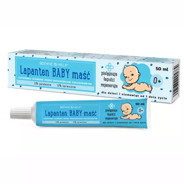 Lapanten Baby to delikatna maść ochronna, zawierająca specjalną formułę opartą na wyjątkowych składnikach, przeznaczona do pielęgnacji wrażliwej skóry okolic pieluszkowych dzieci i niemowląt, już od pierwszych dni życia. Lapanten baby zapobiega powstawaniu odparzeń pieluszkowych, błyskawicznie łagodzi podrażnienia, zaczerwienienia oraz pieczenie i swędzenie. Maść skutecznie pielęgnuje skórę dziecka tworząc barierę ochronną, która zapobiega utracie wilgoci i pozwala skórze jednocześnie oddychać. Wspomaga naturalne procesy regeneracyjne poprzez intensywne działanie nawilżające, natłuszczające i kojące. Dzięki bogatemu składowi, maść wspomaga regenerację brodawek sutkowych u matek karmiących piersią.