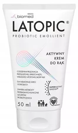 Regenerujący krem do rąk Latopic kompleksowo pielęgnuje, chroni i odżywia skórę atopową, suchą i skłonną do podrażnień. Dzięki bogatej formule skutecznie nawilża i natłuszcza, szybko łagodzi świąd oraz regeneruje. Regenerujący krem do rąk Latopic – zawiera w swoim składzie metabolity Lactobacillus sp., które w naturalny sposób działają przeciwdrobnoustrojowo, pomagają zapobiegać rozwojowi Staphylococcus aureus, który może zaostrzać objawy skórne u osób ze skórą atopową. Przeznaczony jest do codziennej pielęgnacji skóry niemowląt, dzieci i osób dorosłych.