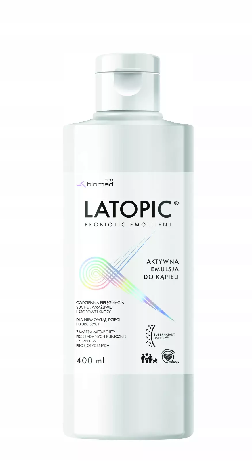 Emulsja do kąpieli Latopic kompleksowo pielęgnuje, chroni i odżywia skórę atopową, suchą i skłonną do podrażnień. Dzięki bogatej formule skutecznie nawilża i natłuszcza, szybko łagodzi świąd oraz regeneruje. Emulsja do kąpieli Latopic zawiera w swoim składzie metabolity Lactobacillus sp., które w naturalny sposób działają przeciwdrobnoustrojowo, pomagają zapobiegać rozwojowi Staphylococcus aureus, który może zaostrzać objawy skórne u osób ze skórą atopową. Przeznaczona jest do codziennej pielęgnacji skóry niemowląt, dzieci i osób dorosłych.