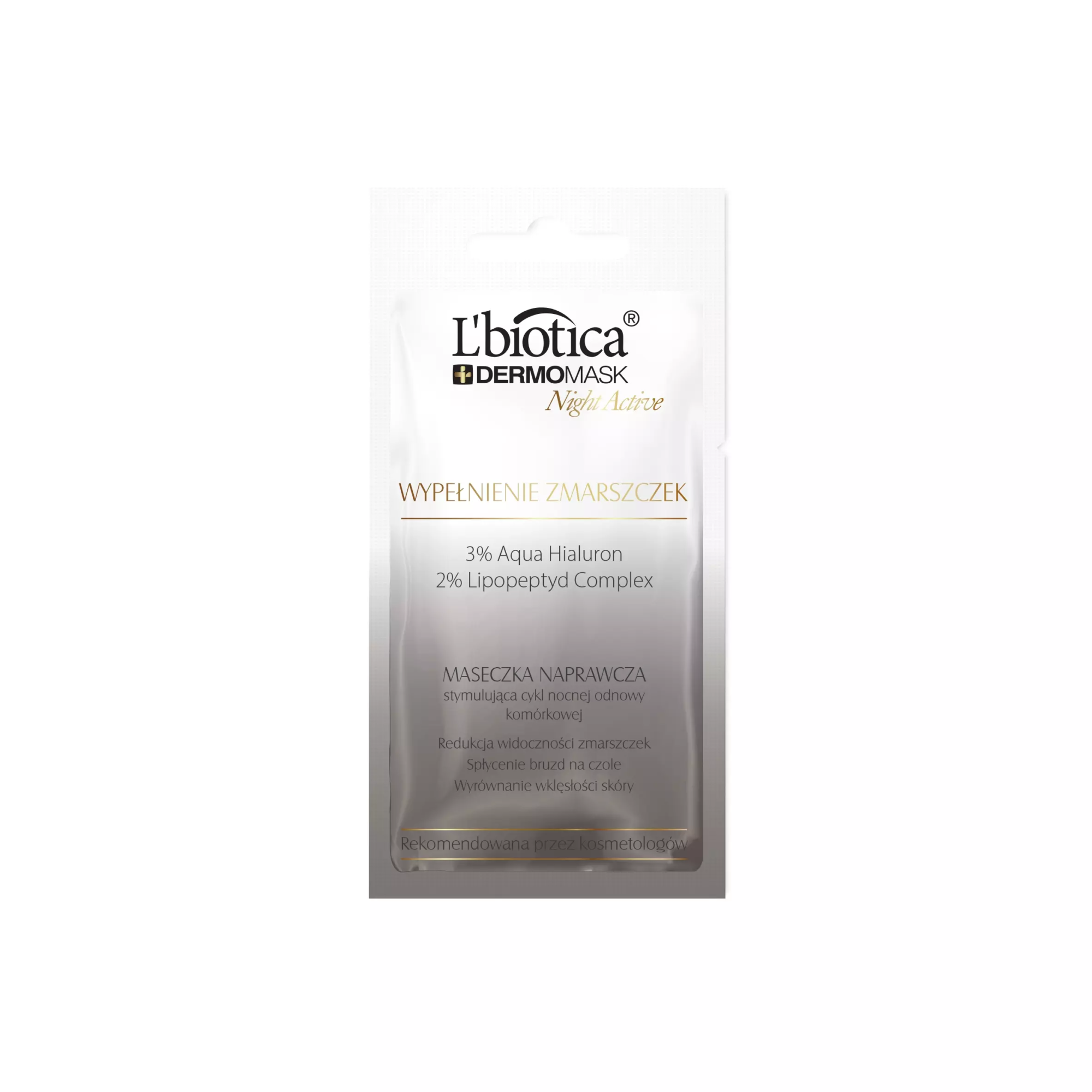 L'Biotica Dermomask Night Active, maseczka naprawcza do twarzy, Wypełnienie zmarszczek, 30ml