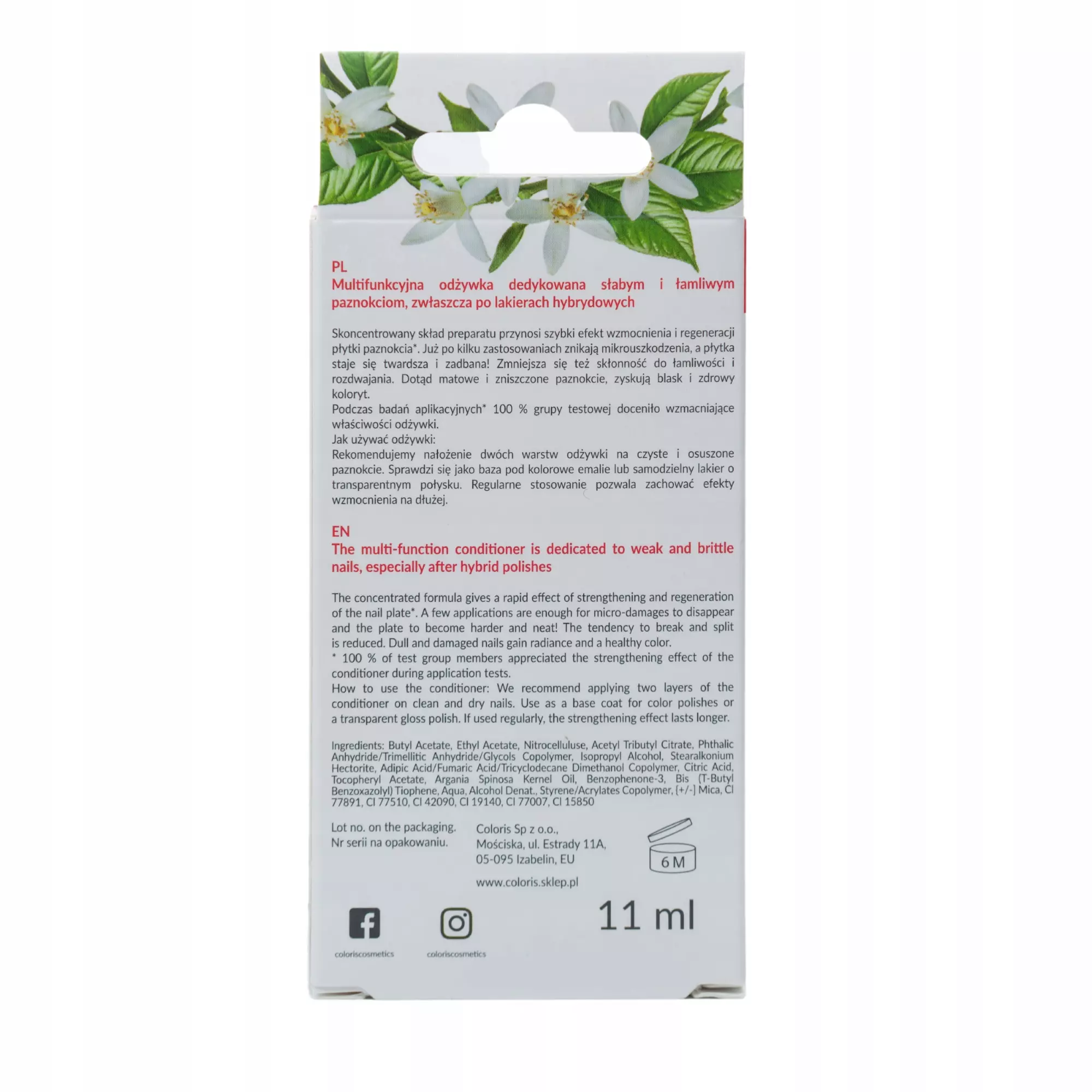 wyczuwalne wzmocnienie płytki głęboka regeneracja mniejsza łamliwość widoczne wygładzenie ładniejszy koloryt paznokci Multifunkcyjna odżywka dedykowana słabym i łamliwym paznokciom, zwłaszcza po lakierach hybrydowych. Skoncentrowany skład preparatu przynosi szybki efekt wzmocnienia i regeneracji płytki paznokcia*. Już po kilku zastosowaniach znikają mikrouszkodzenia, a płytka staje się twardsza i zadbana! Zmniejsza się też skłonność do łamliwości i rozdwajania. Dotąd matowe i zniszczone paznokcie, zyskują blask i zdrowy koloryt.
