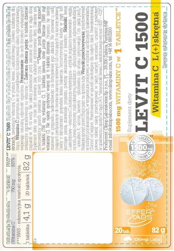 Levit C 1500 to suplement diety zawierający witaminę C w postaci kwasu L-askorbinowego w zwiększonej dawce 1500 mg.