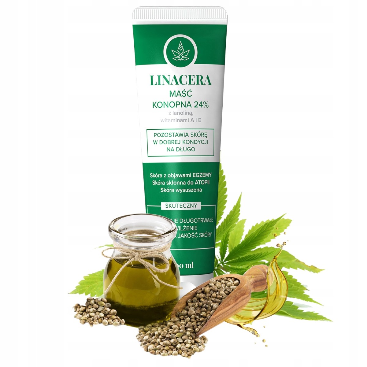 - Preparat Linacera MAŚĆ KONOPNA 24% stosujemy do skóry wymagającej nawilżenia i regeneracji. Zalecamy zarówno dla skóry suchej, skłonnej do atopii, jak i tej z objawami EGZEMY. Doskonale sprawdza się na także na popękanych piętach i skórkach. Produkt polecany jest do codziennego stosowania w celu zabezpieczenia naturalnej warstwy lipidowej skóry.
