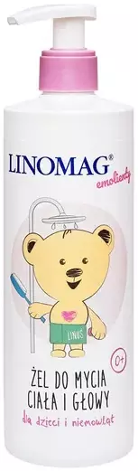 LINOMAG® Żel do mycia ciała i głowy polecany do codziennej kąpieli dzieci i niemowląt od 1. dnia życia. Substancje aktywne stanowią połączenie łagodnych środków myjących, oleju lnianego bogatego w NNKT, w tym kwasy omega-3 i omega-6 oraz pantenolu.