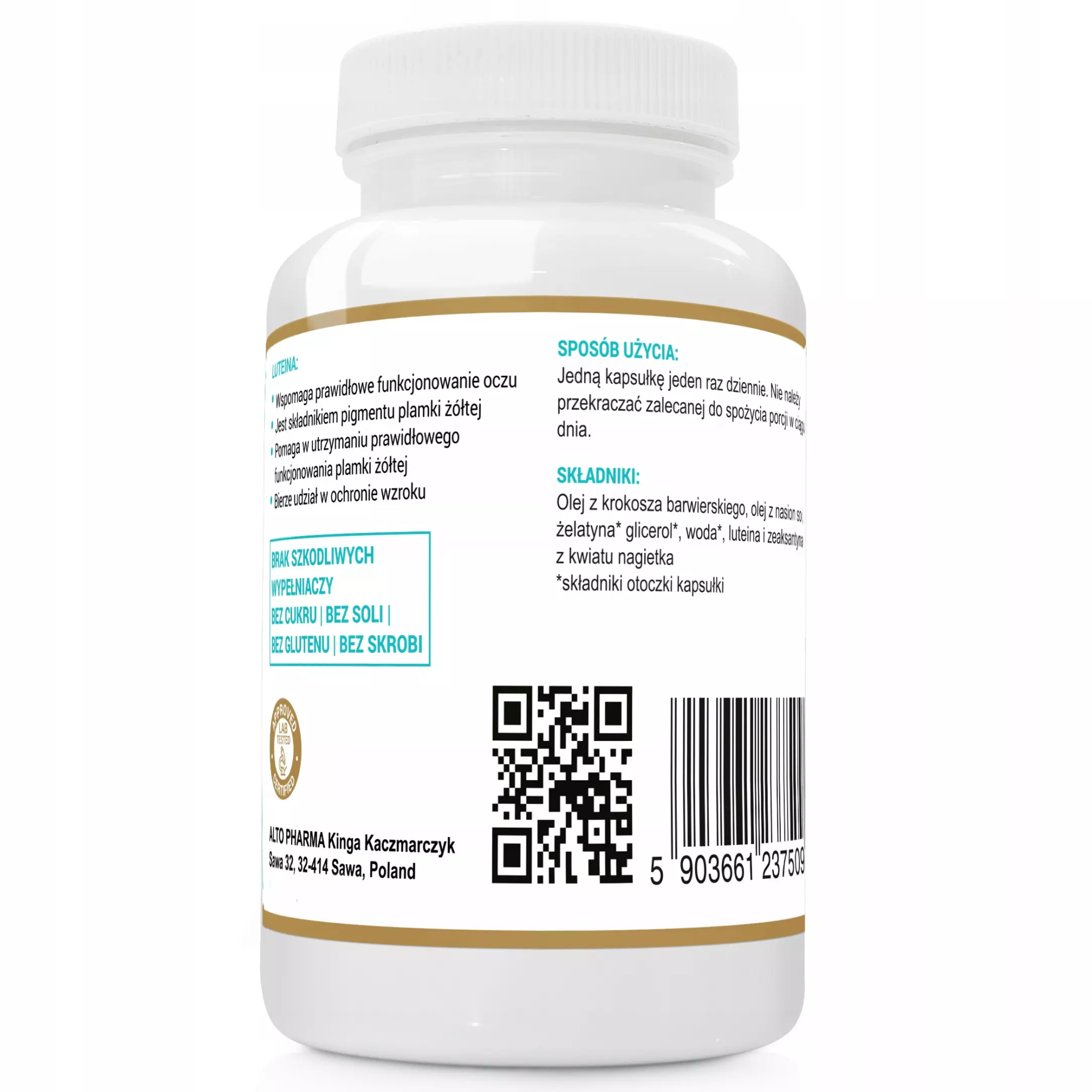 Skład opatentowanej formuły opiera się na ekstrakcie kwiatu nagietka, co gwarantuje 100% naturalność produktu. Warto podkreślić, że kapsułki nie zawierają sztucznych wypełniaczy, co jest gwarancją dla osób dbających o swoje zdrowie. Alto Pharma Luteina Complex dedykowana jest także dla osób o intensywnym trybie życia, takich jak osoby trenujące sporty czy pracujące fizycznie.
