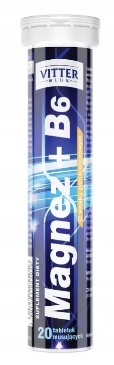 VITTER BLUE Magnez + B6 - smak pomarańczowy, tabletki musujące, 20 sztuk