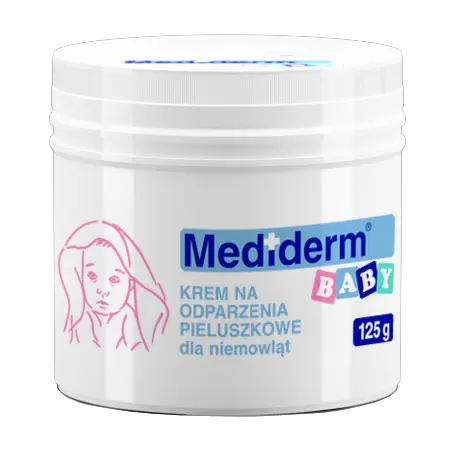 Mediderm Baby krem na odparzenia pieluszkowe działa ochronnie, ściągająco i regenerująco. Krem posiada gładką i lekką konsystencję, która ułatwia jego aplikację na delikatnej skórze niemowląt. Jest przeznaczony do stosowania zarówno w okresie wystąpienia pieluszkowego zapalenia skóry jak i profilaktycznie. Może być stosowany już w pierwszym miesiącu życia.