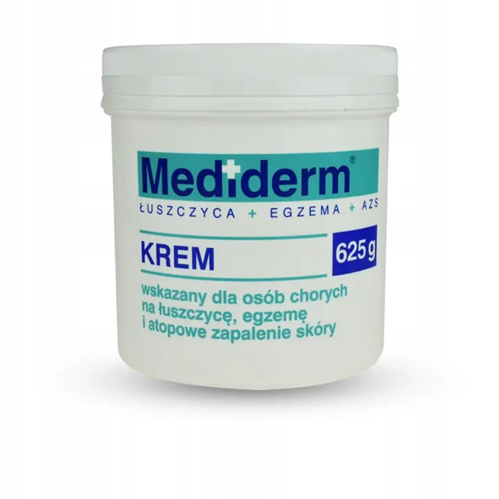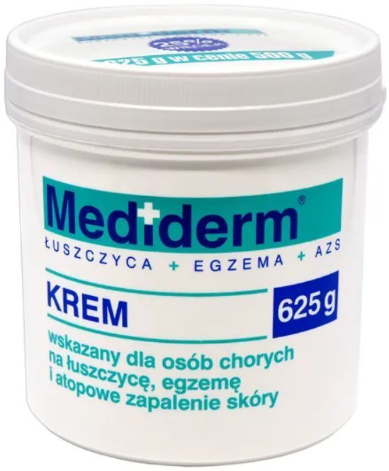 Mediderm, krem specjalistyczny wskazany do pielęgnacji chorobowo zmienionej skóry w przebiegu łuszczycy, egzemy i atopowego zapalenia skóry. Może być stosowany już od pierwszego miesiąca życia. Długotrwale nawilża i natłuszcza, tworząc na skórze barierę ochronną. Nadaje skórze miękkość i elastyczność likwidując nadmierne łuszczenie się i pękanie. Krem ma działanie kojące przy świądzie i pieczeniu. Może być stosowany na duże powierzchnie ciała, nie brudzi ubrań i pościeli. Nie zawiera SLS, parabenów, substancji zapachowych i barwników.