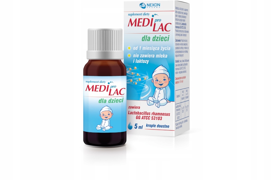 MediproLac dla dzieci to suplement diety w postaci kropli, zawierający jeden z najlepiej przebadanych klinicznie szczepów bakterii probiotycznych,Lactobacillus rhamnosus GG ATCC 53103.