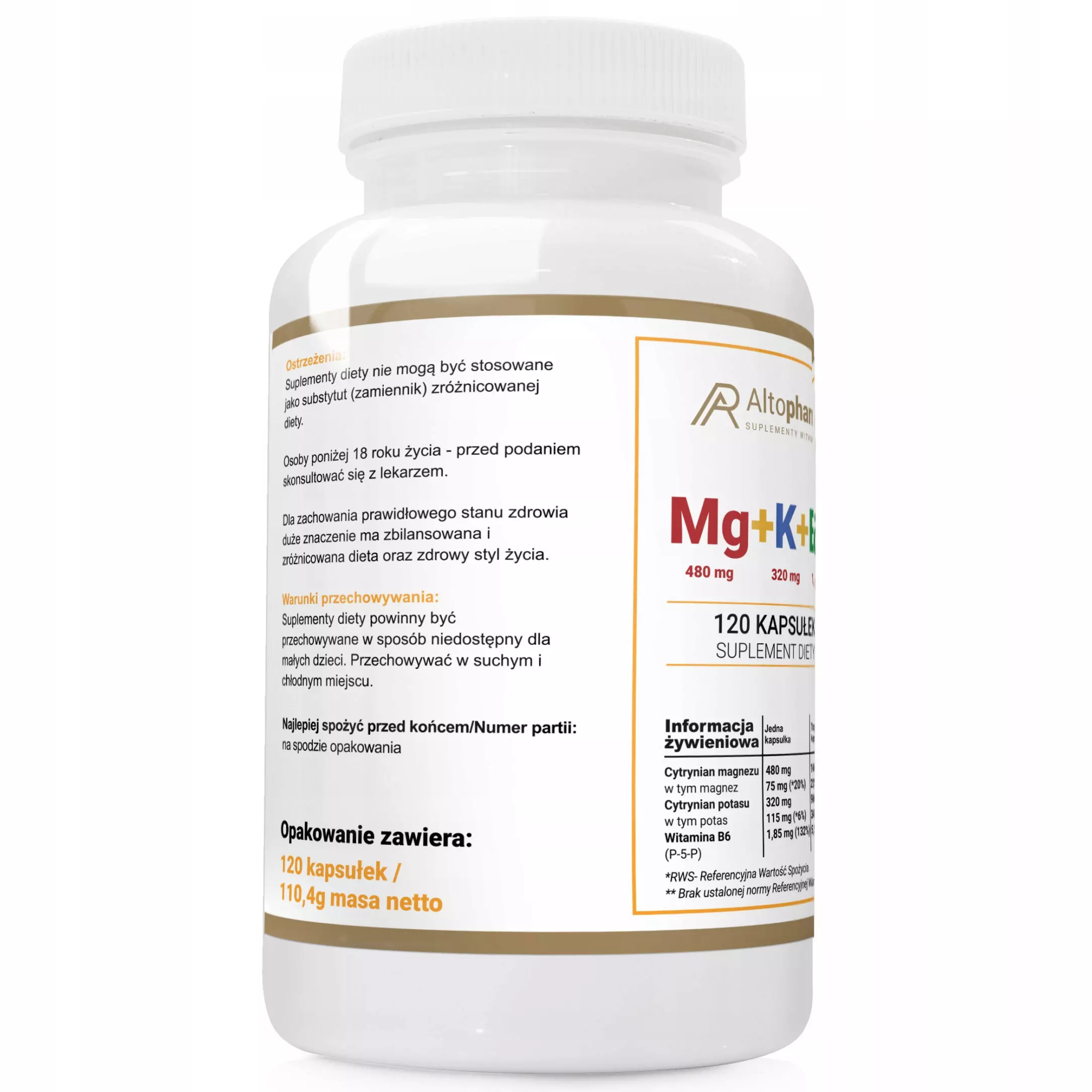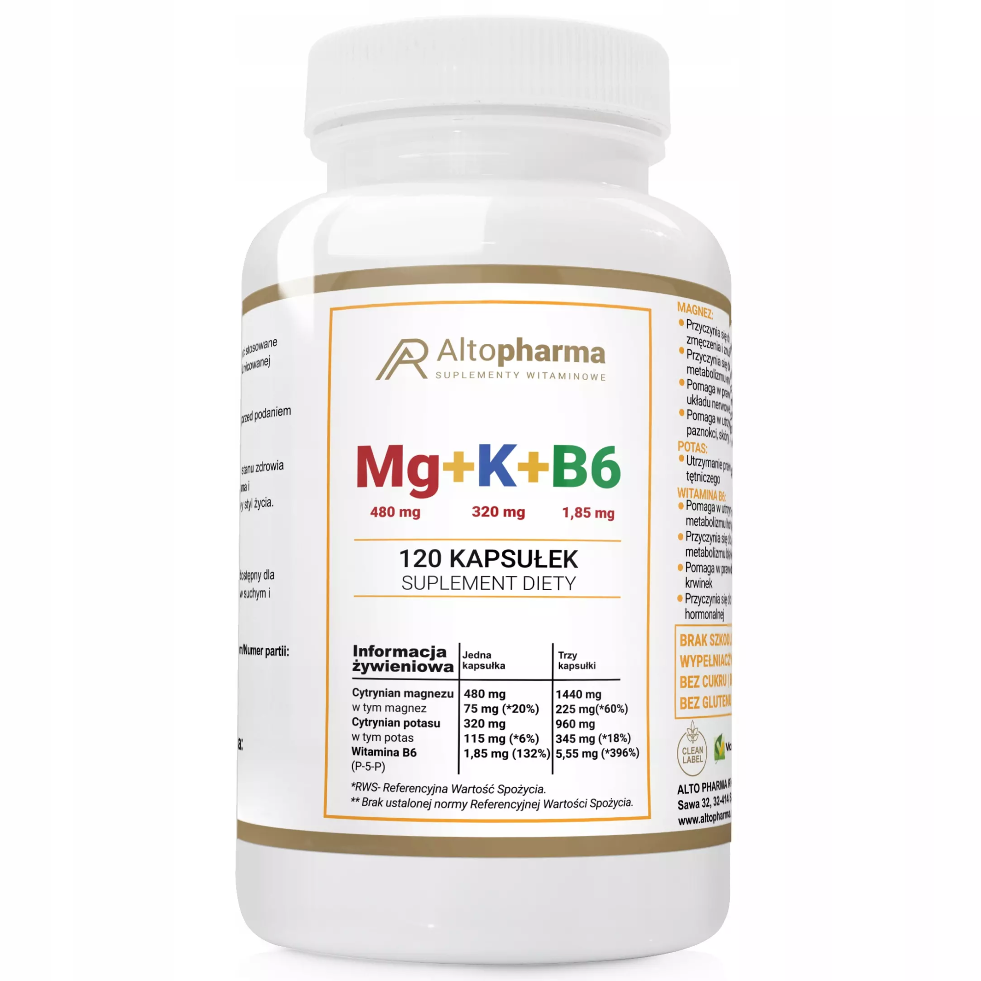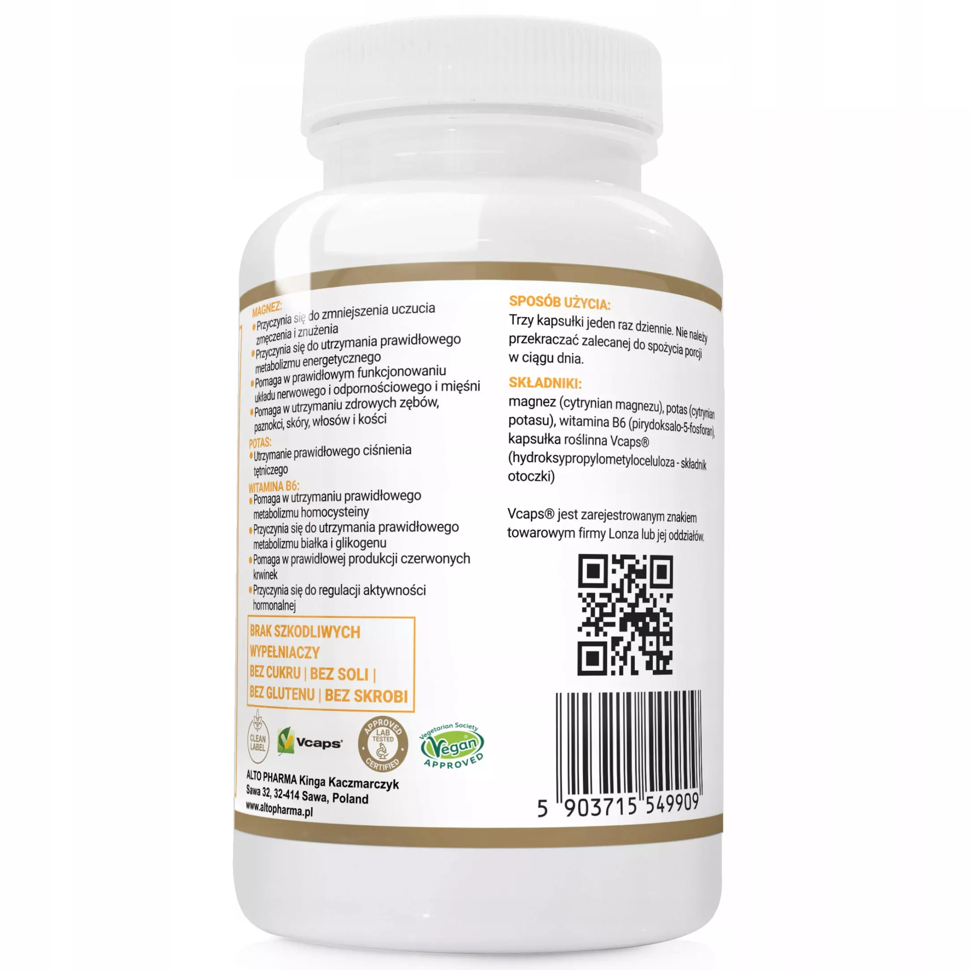Mg+K+B6 Magnez Potas Wit B6 Cytrynian Magnezu Alto Pharma 120 Vege Kapsułek