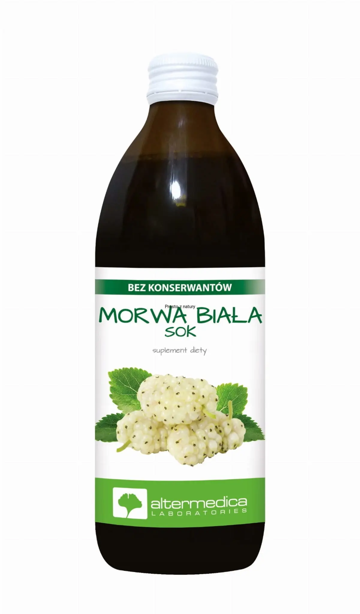 Morwa biała – suplement diety w formie płynnej wyprodukowany z ekstraktu z liści morwy białej (Morus Alba L), wzbogacony kwasem L - askorbinowym stanowiącym źródło witaminy C. Pasteryzowany.