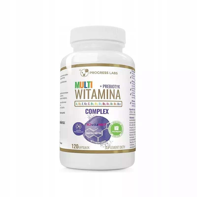 MULTIWITAMINA A D3 E K2 C B COMPLEX PREBIOTYK 120k Marka Progress Labs